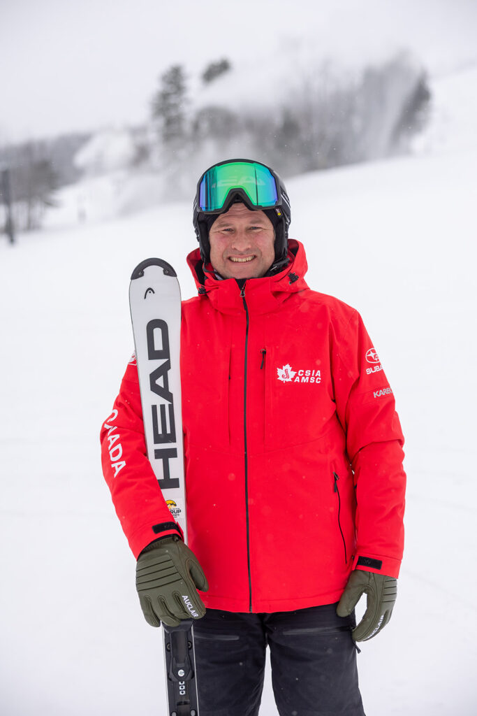 C’était ma première année en tant que moniteur de ski. Je me souviens d’être au pied d’une piste et d’avoir levé les yeux vers la silhouette d’un skieur qui descendait sans effort, alliant vitesse et performance. C’était inspirant. J’ai demandé qui c’était. Il s’agissait de Chris Dodds, un moniteur de niveau 3 qui travaillait à l’époque à Snow Valley, à Barrie, en Ontario. Merci pour cette image, Chris. Tu as allumé toute une étincelle !