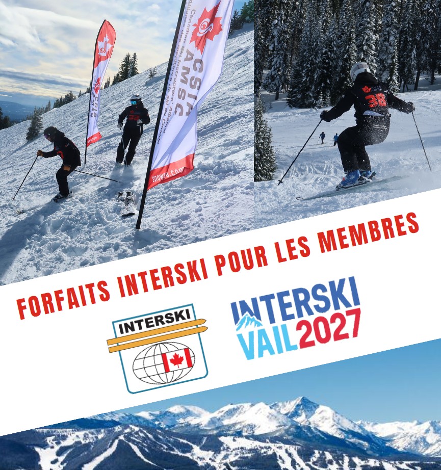 Une occasion incroyable est offerte aux membres de l’AMSC ! Nous vous invitons à vous joindre à nous dans le cadre d’Interski, le congrès international de l’enseignement des sports de neige le plus important au monde. L’événement aura lieu du 4 au 9 février 2027 à Vail au Colorado. Cette chance unique vous permet de rejoindre la délégation canadienne et de vivre un moment inoubliable. Venez voir l’équipe canadienne performer et briller sur la scène internationale !