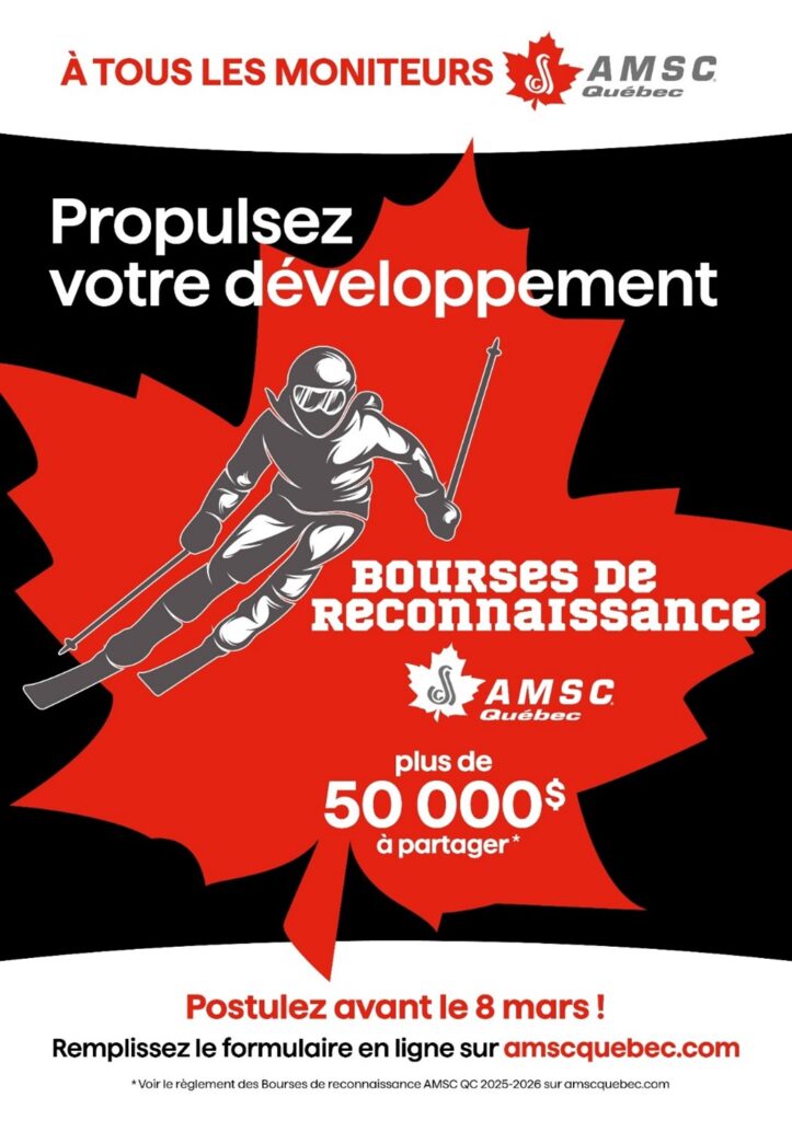 Nous sommes présentement à la recherche de membres de l’AMSC pour former nos comités de sélection afin d’analyser les candidatures à l’aide d’une grille détaillée et pondérée et d’octroyer les bourses dans les catégories Individuelles et Écoles de glisse. Intéressé·e ? Écrivez-nous à amscquebec@snowpro.com avant le 15 février 2026.