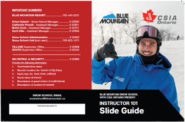 Here are the front and back cover of the Blue Mountain Resort Slide Guide!